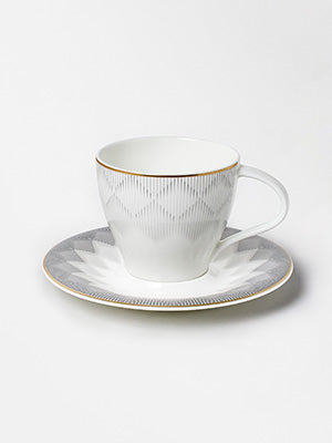 大理石に金彩が施された模様 大理石模様に金彩が施された絵柄を、ニッコーのイングレーズ転写技術※によって、ファインボーンチャイナにディテールまで表現したシリーズです。 ※釉上に絵付けして焼き付ける「イングレーズ絵付」手法。高温焼成によって釉薬中に溶け込み、光沢と耐久度が増します。