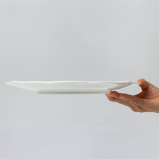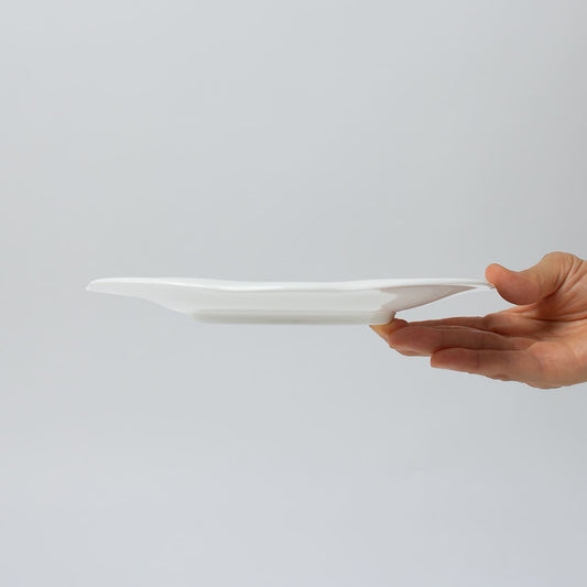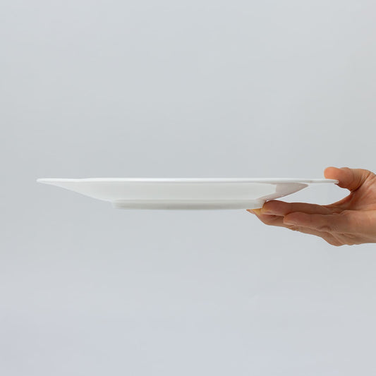 縁から盛り面へとゆるやかに続くプレートは、料理を美しく引き立てます。料理を盛り付けると白い器にきれいな陰影が生まれ、料理がより立体的に際立って見えます。