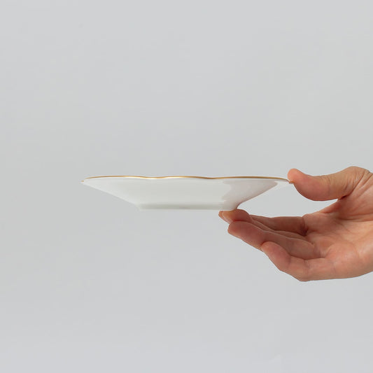 気品ある花々が咲いていく様子をイメージさせるシンプルで美しいシリーズです。真っ白な素地に縁取られた金のラインが、アンテーゼの特徴である花形のシェイプを際立たせます。