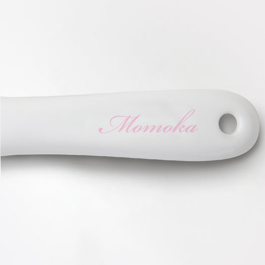 プラチナ、ゴールド、ベビーブルー、ベビーピンクの4色のカラーバリエーションと英語筆記体、ひらがなの文字体2種の8種類のネーム入れパターンからお好きな商品を選択できます。