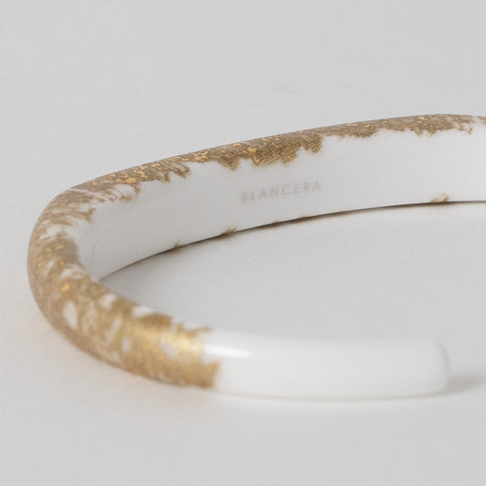 Haku(ハク)シリーズは夏の日差しに映える煌めくゴールドが、動くたびに美しく輝きます。Haku Gold(ハク ゴールド)は白とゴールドのコントラストで手元を美しく彩ります。BLANCERAは水にも強いセラミック素材なので水辺やアウトドアシーンでも気兼ねなく着用いただけます。