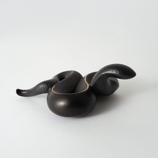 モダンなフォルムにリッチな質感の黒マット。強さ、保護、再生などの力を象徴する黒色の巳(へび)は厄除けとして期待されたり、変化を乗り越えて新しいステージに進むために縁起の良い存在です。