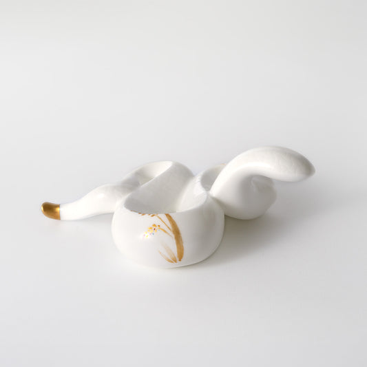 古くから「豊穣神」「天候神」と崇められ、財運や繁栄をもたらすとされる「巳」のボーンチャイナ製の置物です。