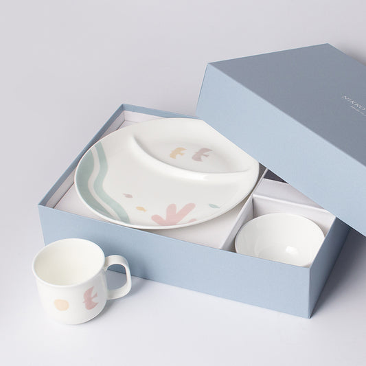 食事を通してお子さまと楽しい時間を過ごしていただきたい。そんな想いを込めて、ファインボーンチャイナ製の子供食器「Lintu」「Karfy」を作りました。