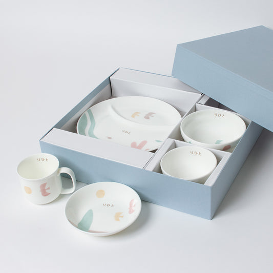 パステル調の色あいと優しいタッチのイラストが食事の時間を楽しく演出します。