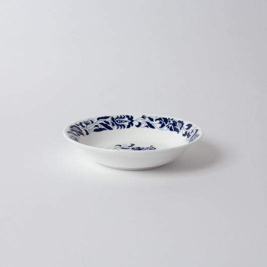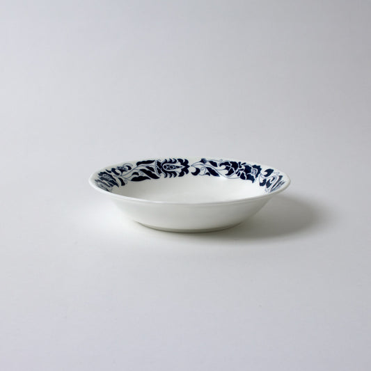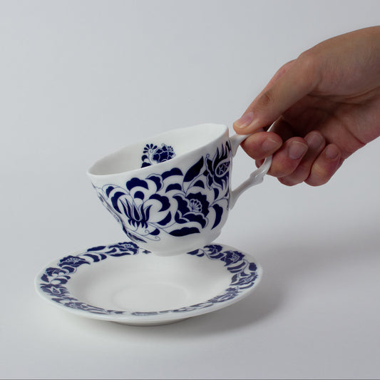 1957年、ミングトゥリーが誕生した当時の製造方法は銅板印刷であり、銅板の特性を生かしたデザインでした。MING TREE Ⅱは銅板印刷ではありません。転写紙の印刷技術であればどうするのが良いかを考え、面的な表現でリニューアルする方向性になりました。その際にはどこを面として表現し、白と塗りのバランスでどれだけ食器として均衡が取れるかを意識し、オリジナルの図案を再解釈していきました。