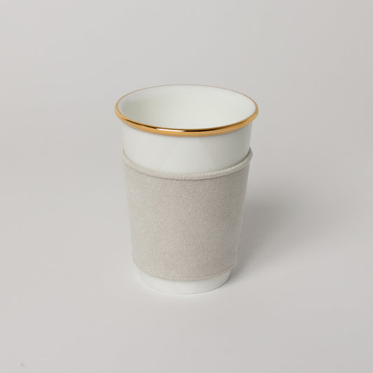 コーヒーを飲む際に使っている紙コップの代わりに、使い捨てしない陶磁器でできたカップを利用することで無駄を削減したいという思いを、このカップとスリーブに込めています。