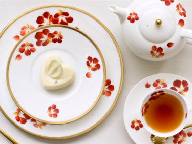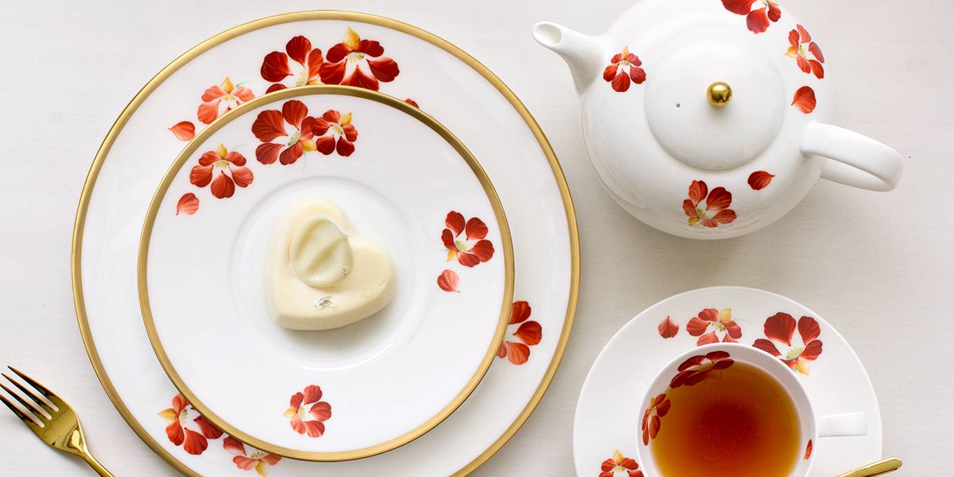 NIKKOハンドペイントの「HANA 花」シリーズ・「ナスタティウム」は、エディブルフラワーとしても人気のお花で アフタヌーンティーやお食事のシーンを華やかに演出します。 五つ星最高級ホテルのラウンジでも使われている絵柄に、金をあしらいました。ペアセットなどもご用意しました。大切な方への特別な贈り物に最適です。