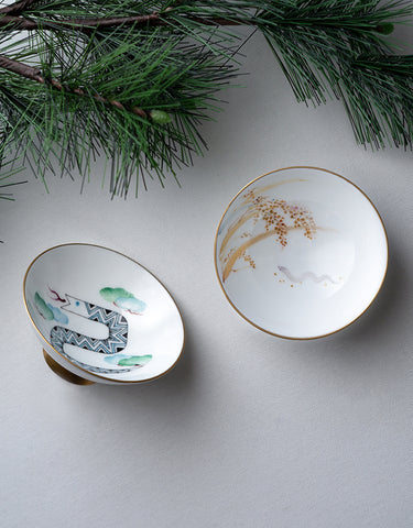 縁起物として 手描きで干支を盃に描いたシリーズ「干支盃」。「生命」「再生」の象徴であり、豊穣神と崇められる「巳(へび)」を、一筆一筆ハンドペイントで描いた干支の盃です。