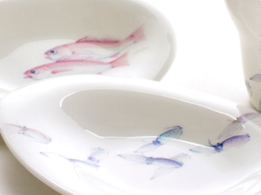 海に育まれた国、日本。その日本の海の生き物がいきいきと描かれたシリーズ「UMI 海」。 NIKKO誕生の地、北陸・金沢近海の魚たちにスポットをあてました。図鑑のように描くのではなく、海の香りや波のゆらぎを感じさせる繊細なグラデーションと透明感が魅力です。 お寛ぎの時間やお食事のシーンに。