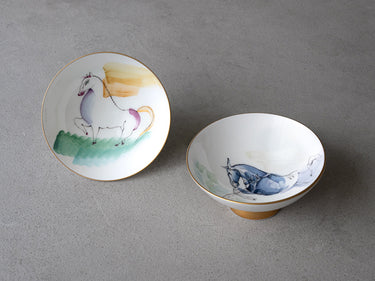 縁起物として 手描きで干支を盃に描いたシリーズ「干支盃」。力強く駆け、常に前進する姿から繁栄、成功、飛躍の象徴とされる「午(うま)」を一筆一筆ハンドペイントで描いた干支の盃です。
