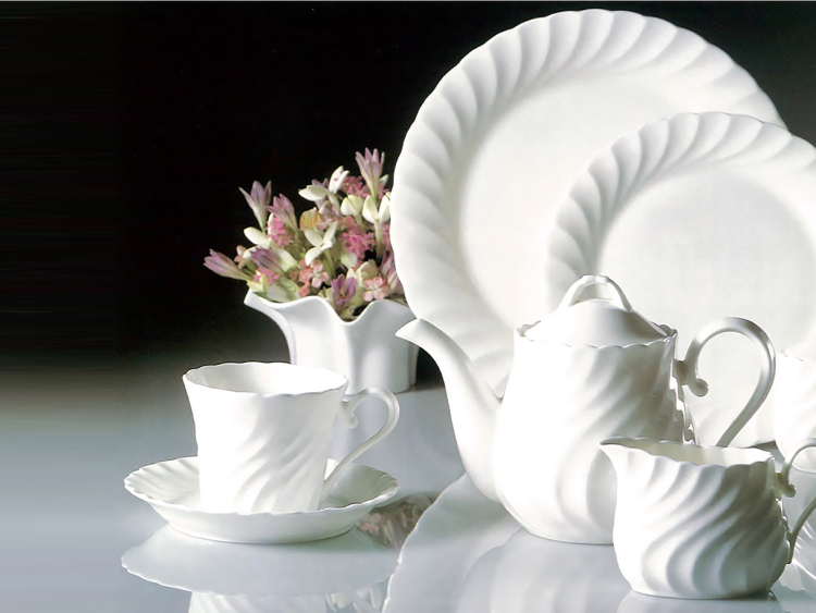 繊細なレリーフとボーンチャイナの透光性が美しい