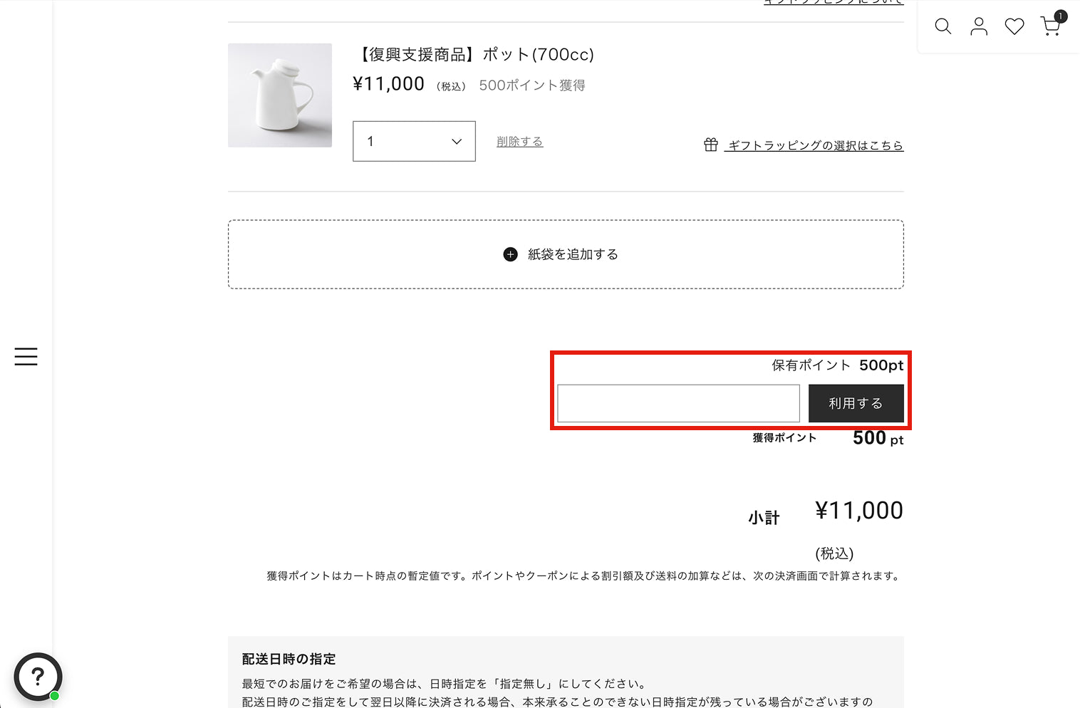 ・商品購入によって付与されたポイントを次回のお買い物から、1ポイント=1円として商品代金(送料は除く)にお使いいただけます。