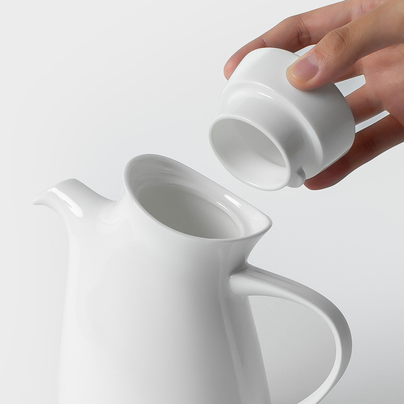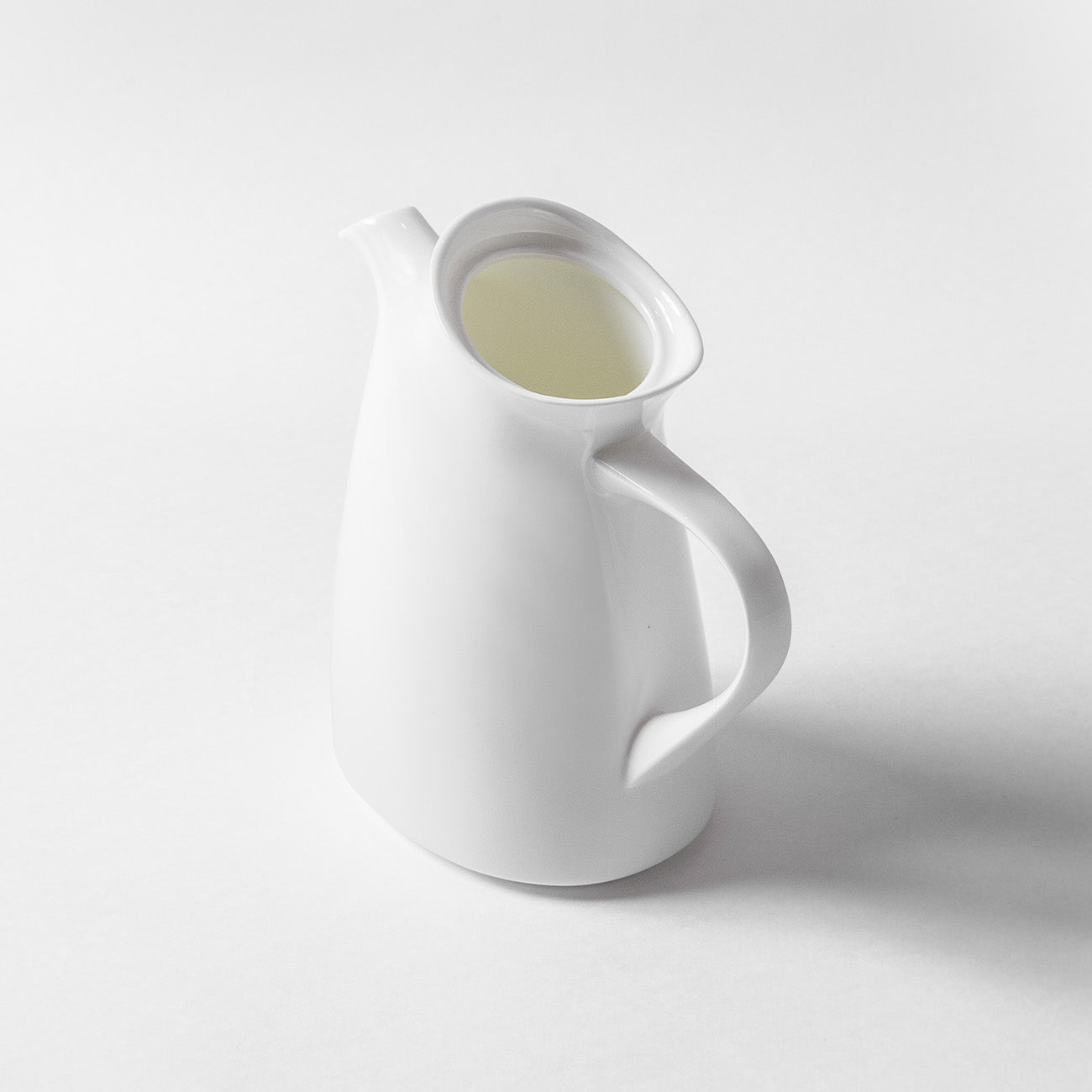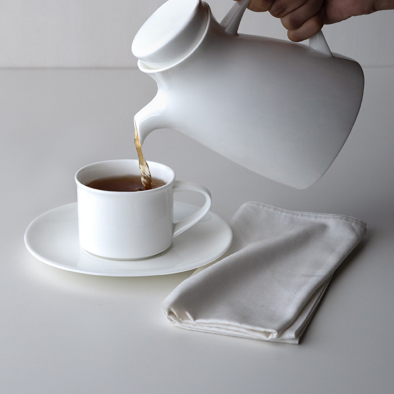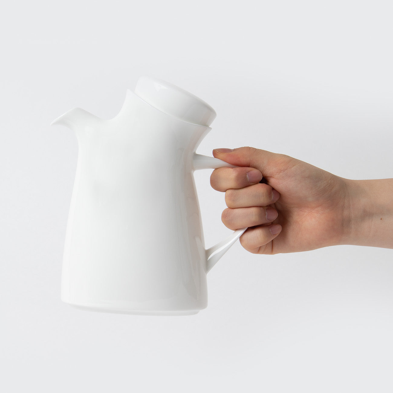 のびやかな造形が特徴的なポット。やや大きめの容量(満水時 約700cc)でゲストがいらっしゃるパーティーやディナーのシーンで重宝します。約4人分の量がはいります。ストレーナー(茶漉し)なしタイプです。