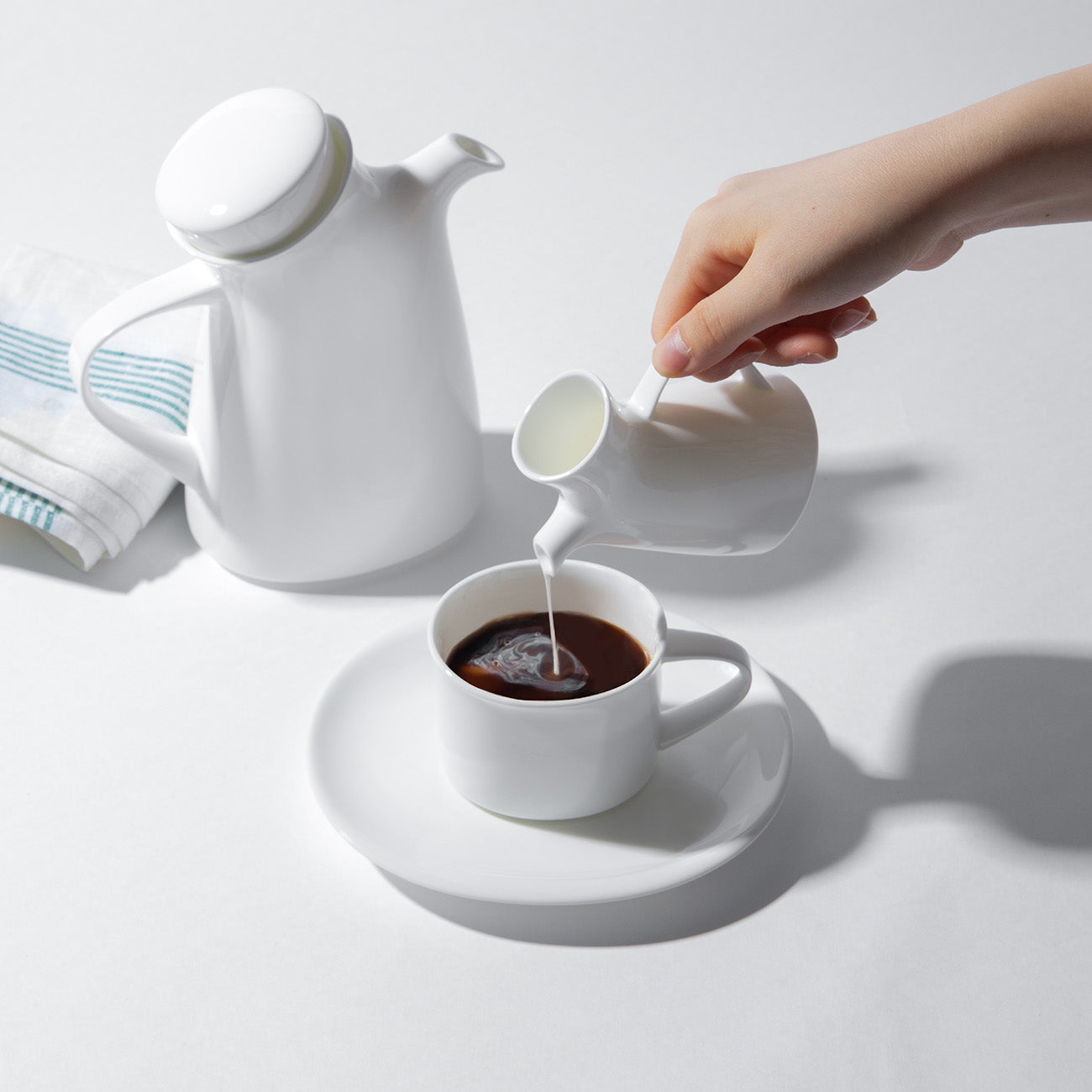 陶芸家・會田雄亮(あいだ ゆうすけ)によって1960~70年頃にデザインされ、当時NIKKO(日本硬質陶器という社内の時代)にて硬質陶器素材で製造していたアイテムを、ボーンチャイナで復刻。