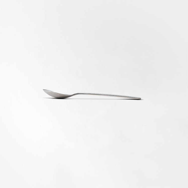ティータイム時のコーヒースプーン・ティースプーンとして、デザートなどを食べる時のスプーンとしても便利なサイズです。直線的なミニマルデザインですっきりとした佇まいが特長です。