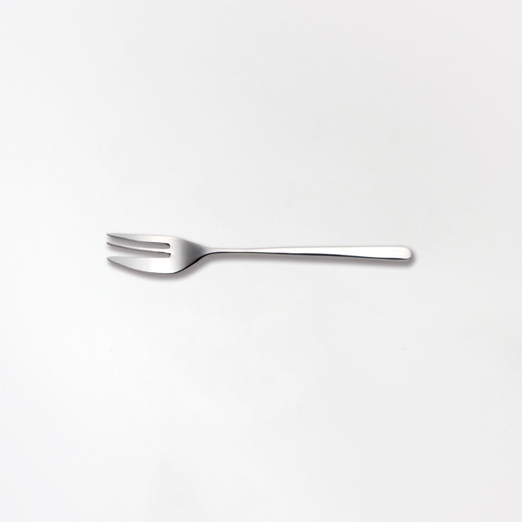 ケーキフォーク5本セット。ケーキやデザート、フルーツなどを食べる時に便利なサイズです。直線的なミニマルデザインですっきりとした佇まいが特長です。