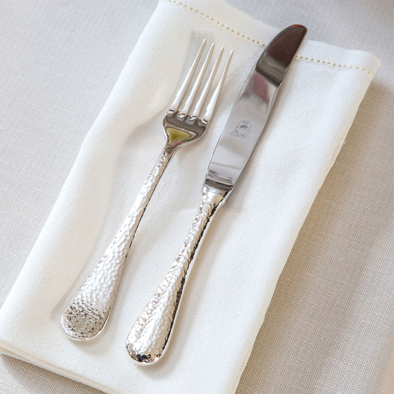 クラシックなフォルムとハンマードパターンが特長のEPOQUE(エポック)シリーズ。ハンマードパターンは、イタリア北部の山々の職人が叩いた手作りのフォークを再現したデザインです。