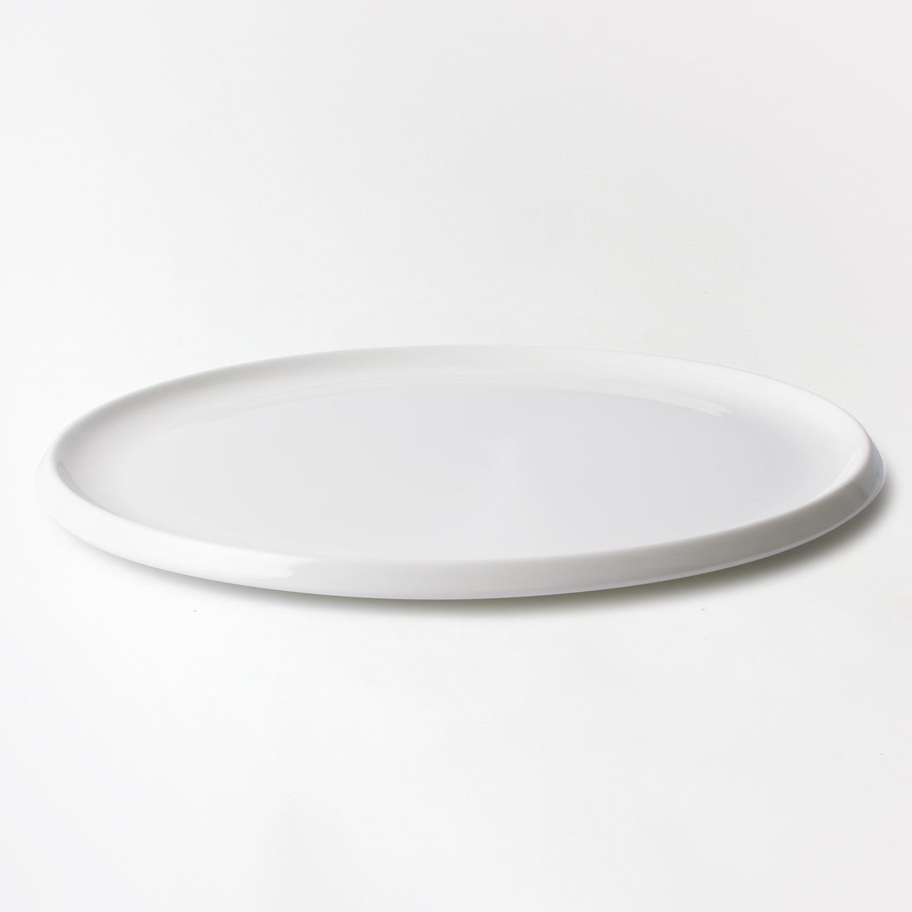 プレートのフラット面を最大限に広くし、角度のついた短めのリム(ふち)がアクセントになり、お料理を引き立ててくれるデザインになっています。プロユース向けの大皿です。