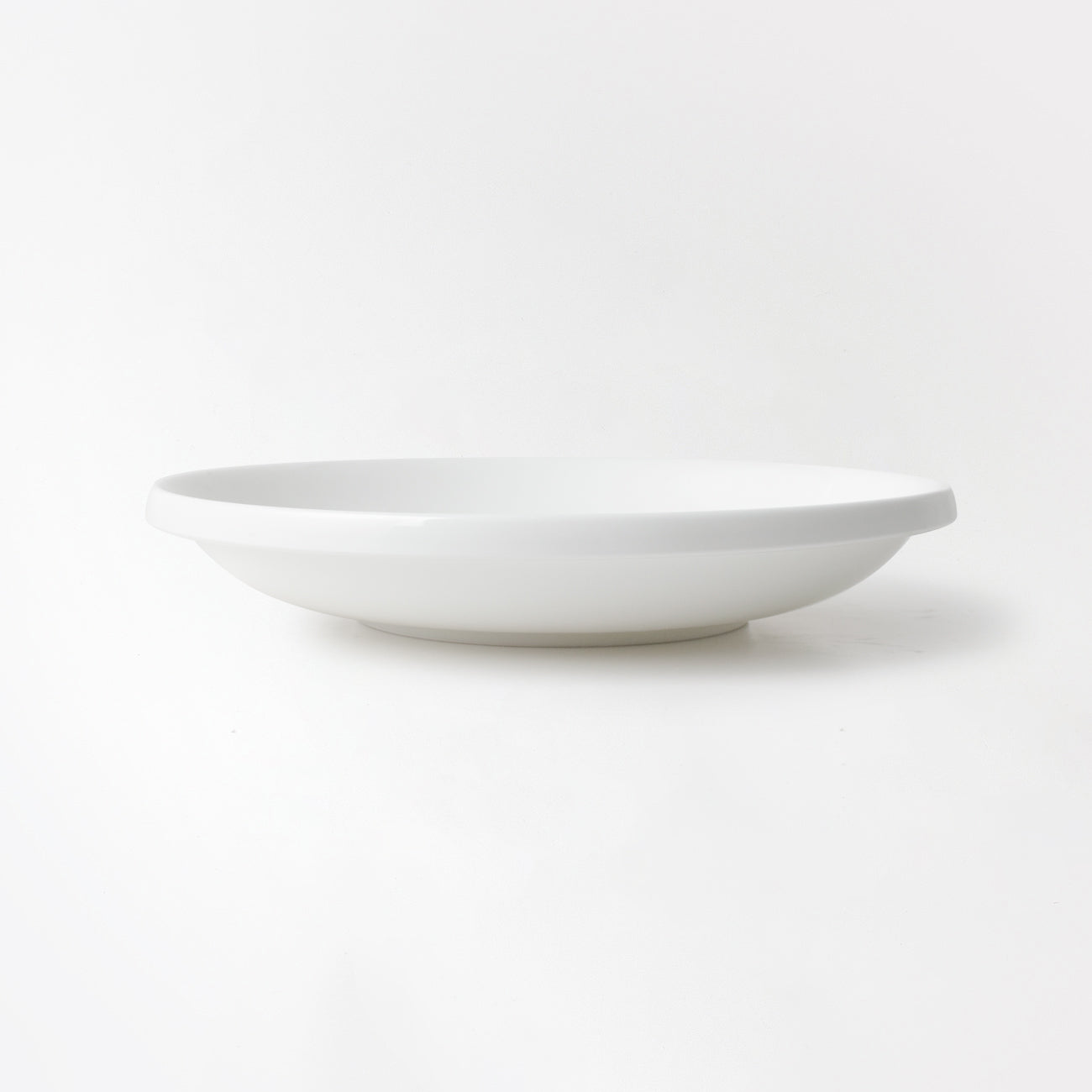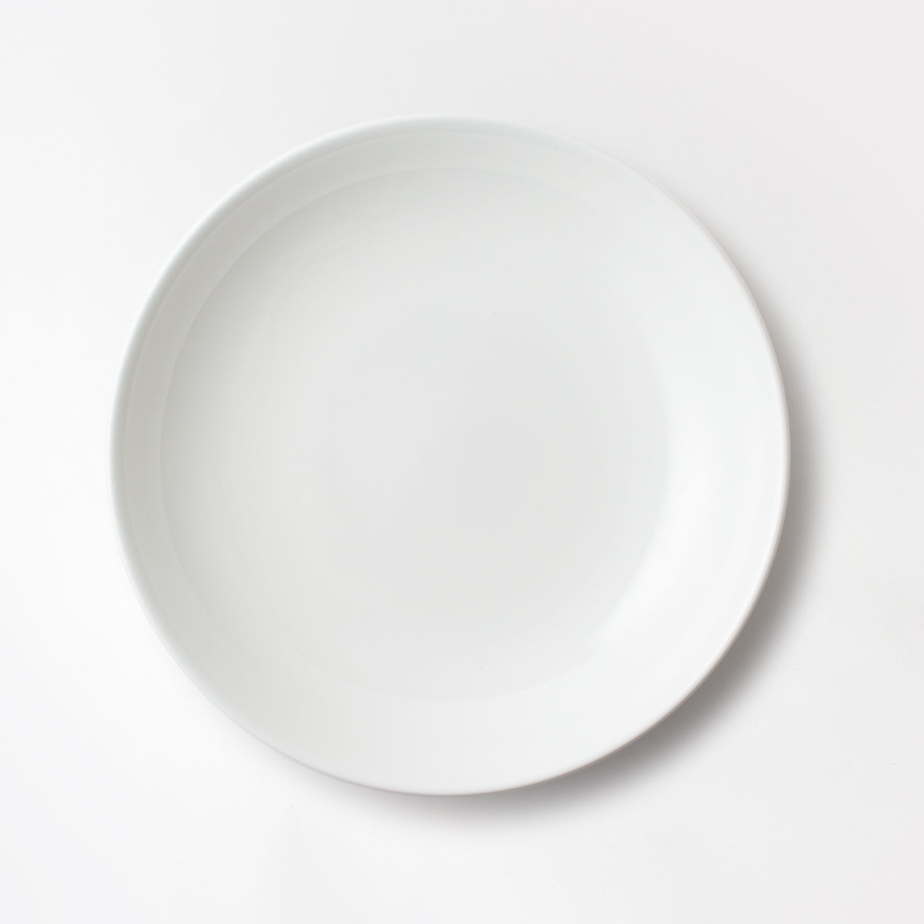 プレートのフラット面を最大限に広くし、 角度のついた短めのリム(ふち)がアクセントになり、 お料理を引き立ててくれるデザインになっています。