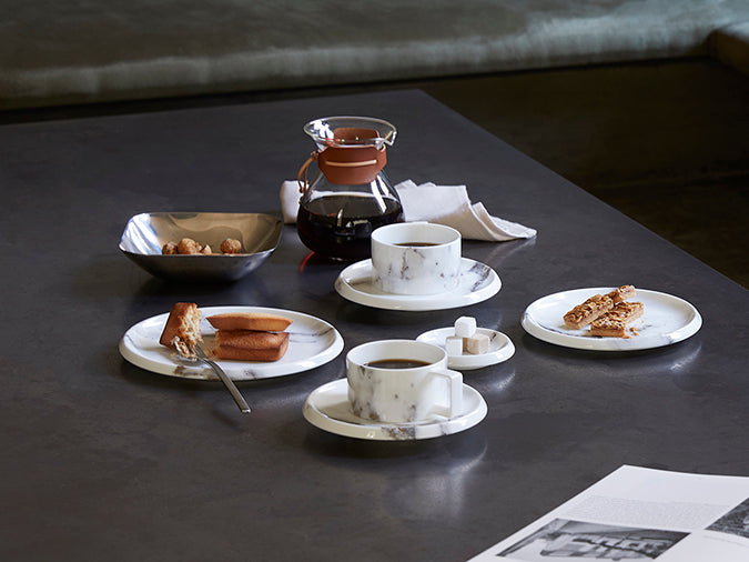 大理石(マーブル)模様に金彩が施された絵柄を、NIKKOのイングレーズ転写技術※によって、ファインボーンチャイナにディテールまで表現したシリーズです。