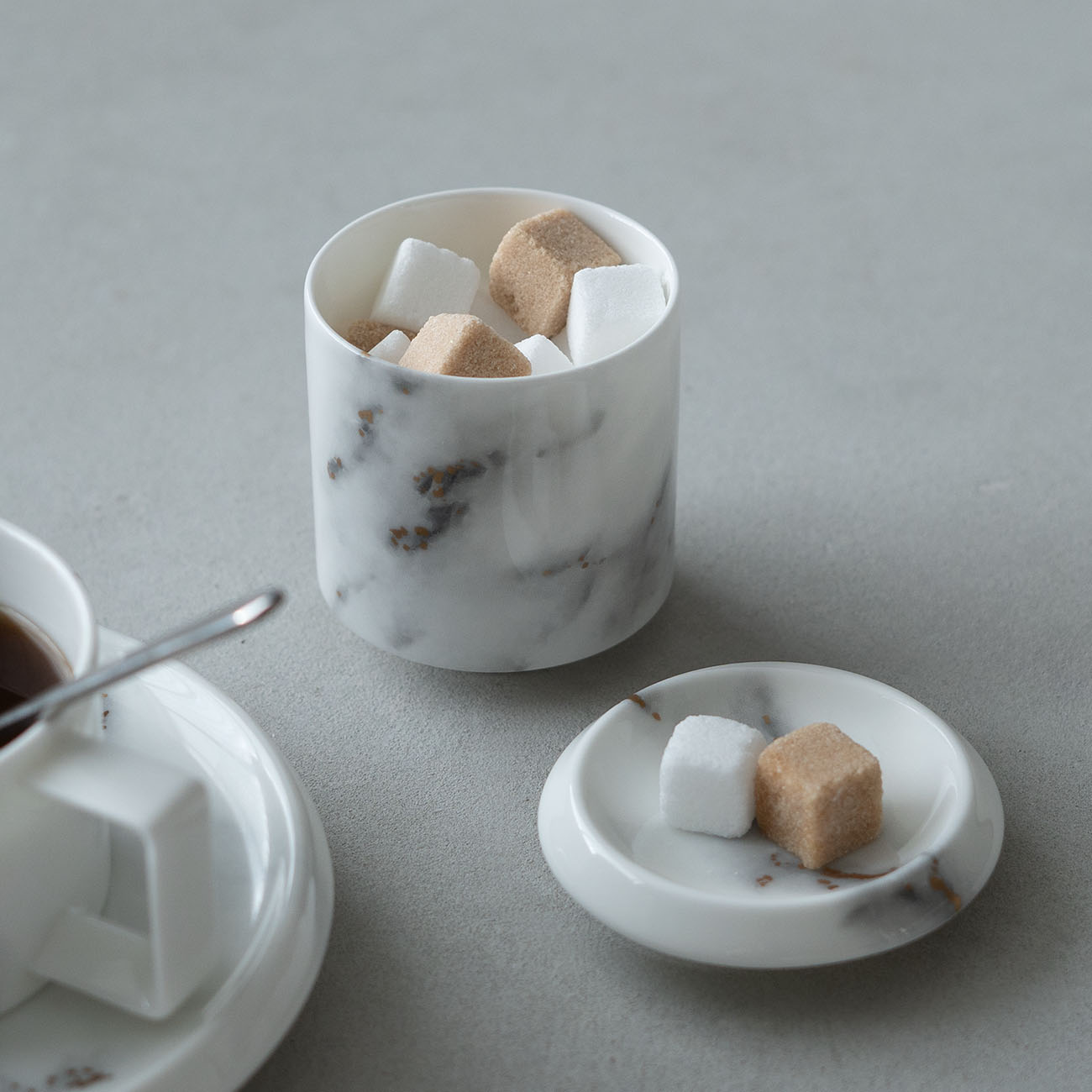 大理石(マーブル)模様に金彩が施された絵柄を、NIKKOのイングレーズ転写技術※によって、ファインボーンチャイナにディテールまで表現したシリーズです。