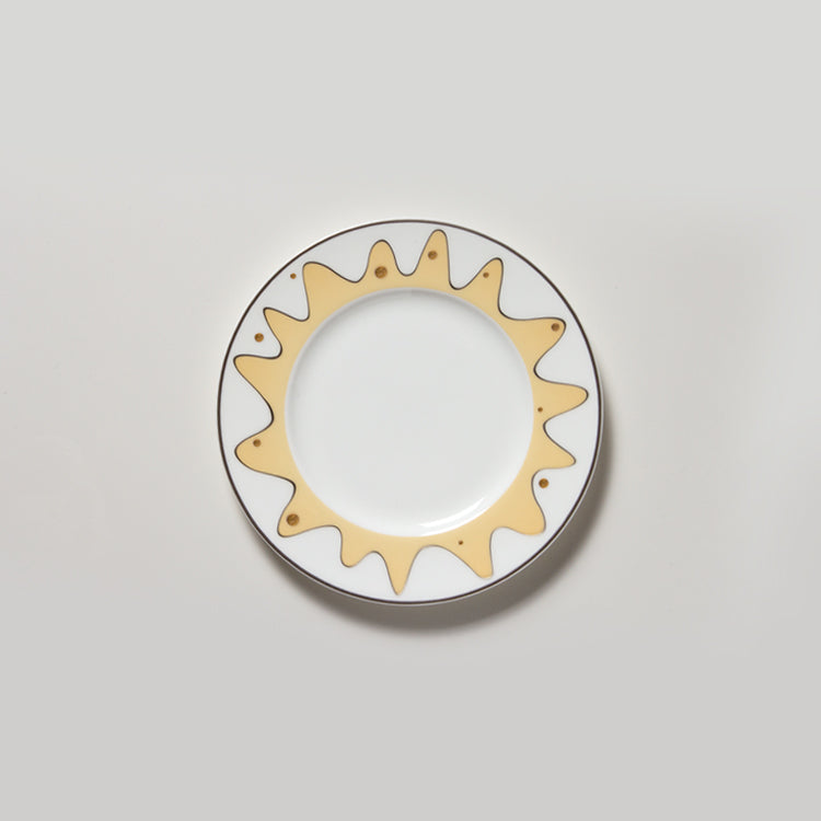 リムに施された太陽を思わせるデザインが特徴のプレートです。パン皿やプチケーキ皿にちょうどよいサイズです。■SOLEIL(ソレイル)シリーズ