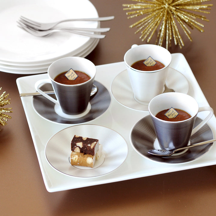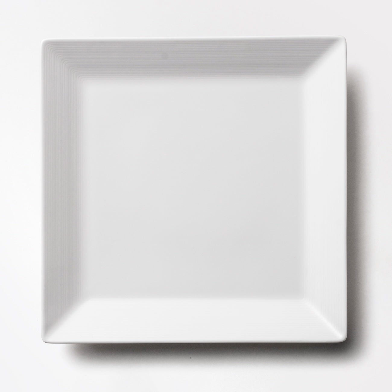 シャープなデザインの角皿。テーブルをモダンな雰囲気に演出。メイン皿や盛皿として使いやすいサイズです。