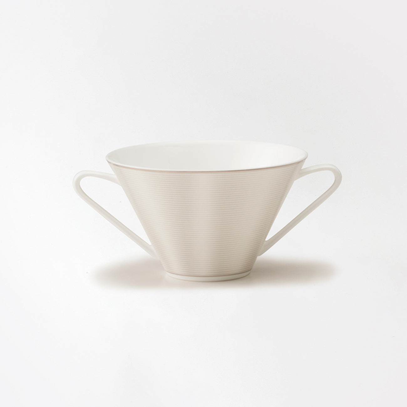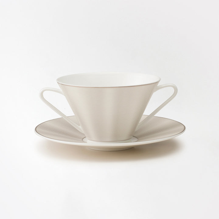 両手付きのスープカップ。デザートなどを盛り付けても素敵です。カラー:シルクプラチナム(シルバー)