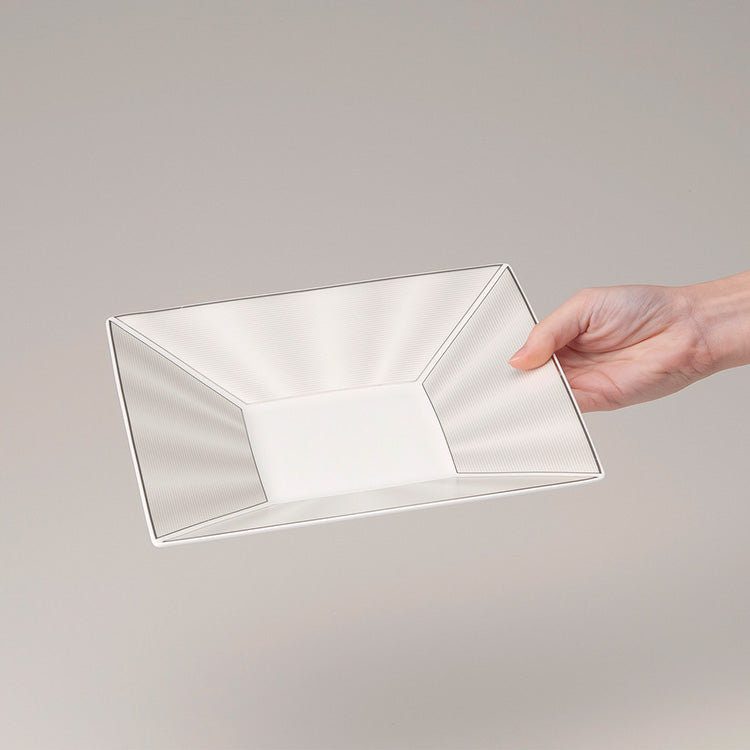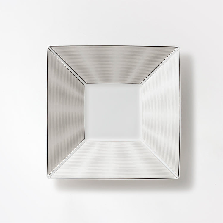 シルクのような質感の絵柄と薄くて軽いのが特長のELITE MODERNシリーズ。大きなリムのスクエアプレートは、お料理を華やかな印象にしてくれるアイテムです。