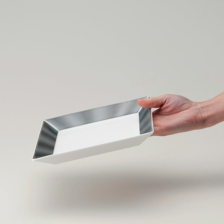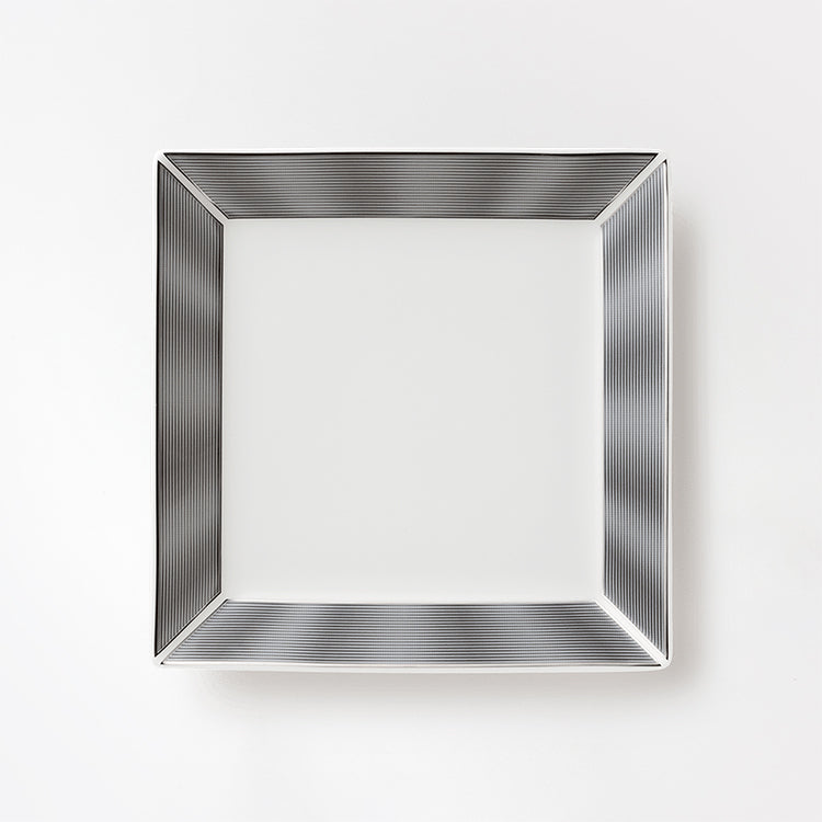 シャイニーなデザインのリム付きの角皿です。小さめのおかずプレートやデザートのプレートとしてお使いいただけます。