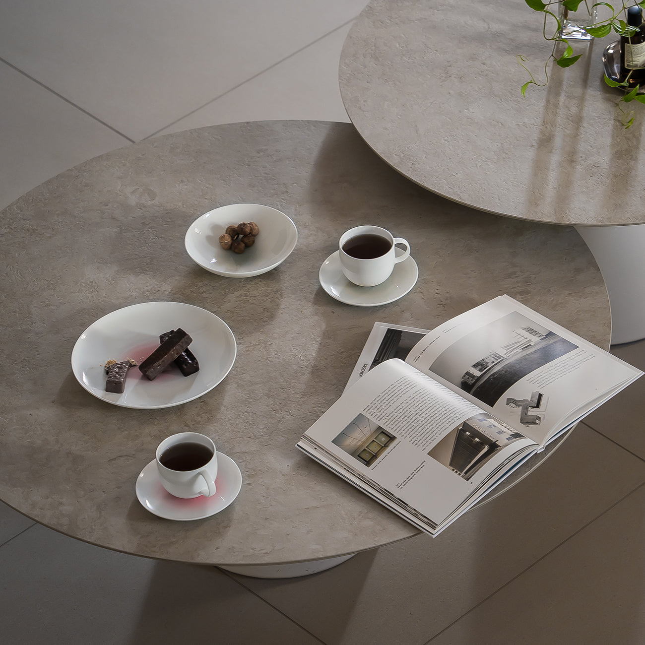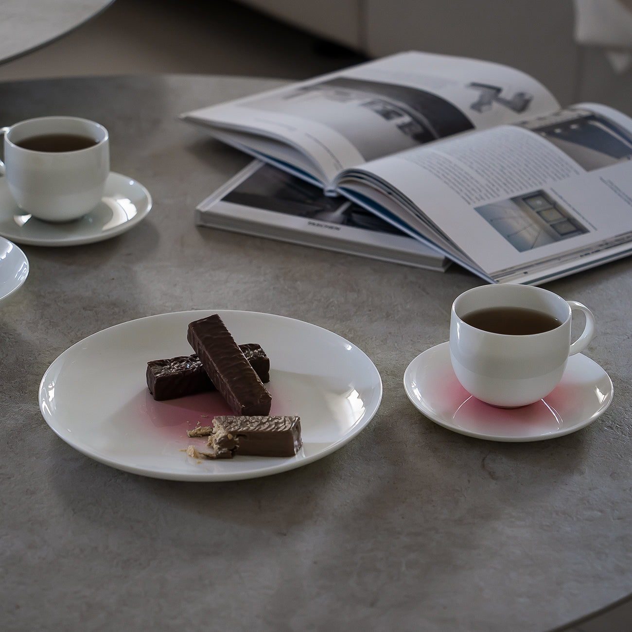水彩画を思わせるやわらかな色が、淡く薄れ、消えゆく幻想的な雰囲気のパターンです。 雲のような、ほのかな色の表現は見るものに驚きを与えます。やわらか色によるドットモチーフは、デザイナー ボド・スパレンがニッコーとコラボレーションするに当たってのひとつのテーマです。