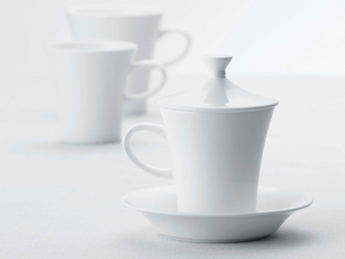 花が開いたような形のカップは口当たり・飲み心地が抜群で、お飲み物の味を一層深く味わうことができます。 一度ボーンチャイナのなめらかなで薄い口当たりを体感していただくと、手放せなくなること間違いありません。味にこだわりをもつ方におすすめのシリーズです。