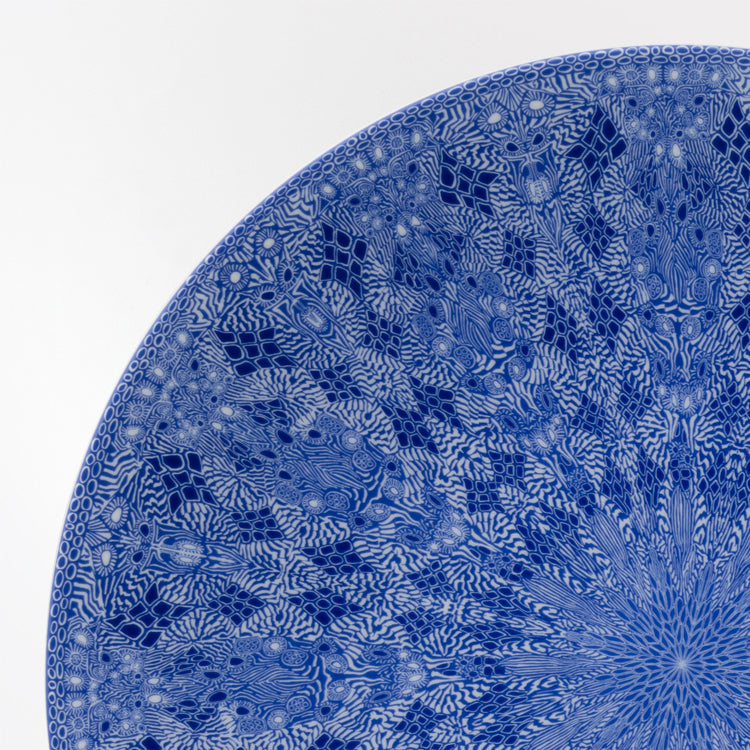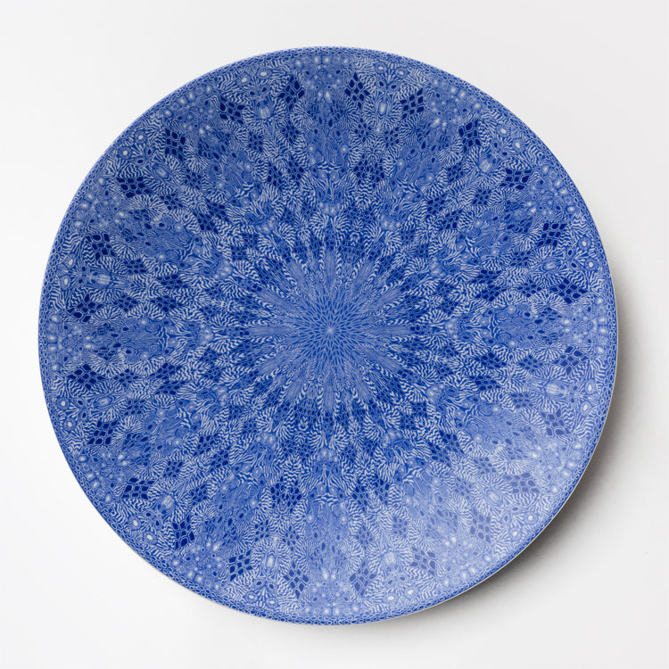 幾何学的図形の絵柄のショープレート(ブルー)です。ご家庭では盛り皿として、お使いいただけます。同アイテムで、グレーとピンクのカラーバリエーションがございます。
