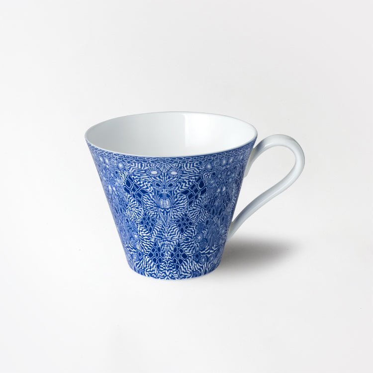 幾何学的図形の絵柄の兼用碗(満水時容量230cc)(ブルー)です。別売りの12480B-20215 16.5cmソーサー(ブルー)と合わせてお使いいただけます。同アイテムで、グレーとピンクのカラーバリエーションがございます。