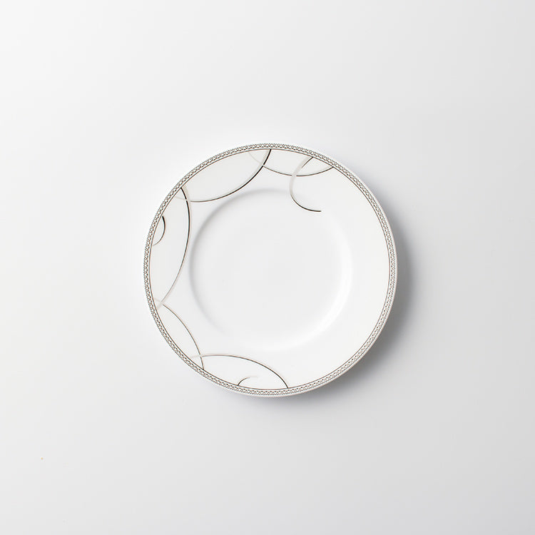 ボーンチャイナの純白のなめらかな素地にパールグレーと黒のシックなたたずまい。