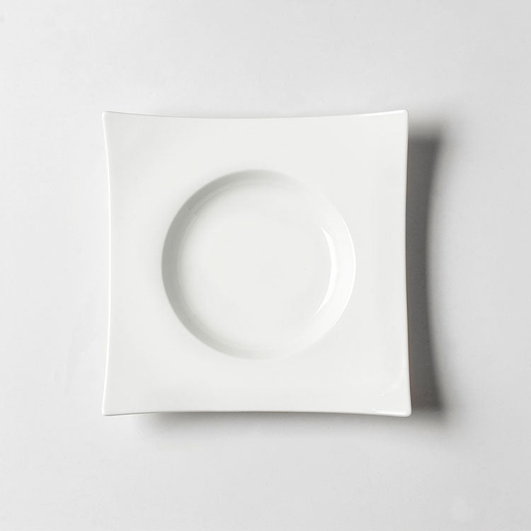 角皿の中央に深さのあるボール状になった変形プレート。前菜やデザートにおすすめです。