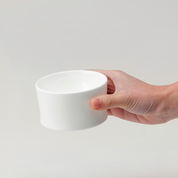 内側がボール型になっている形状のスープ用カップ(満水時容量180cc)です。収納時にスタッキングが可能な形状です。