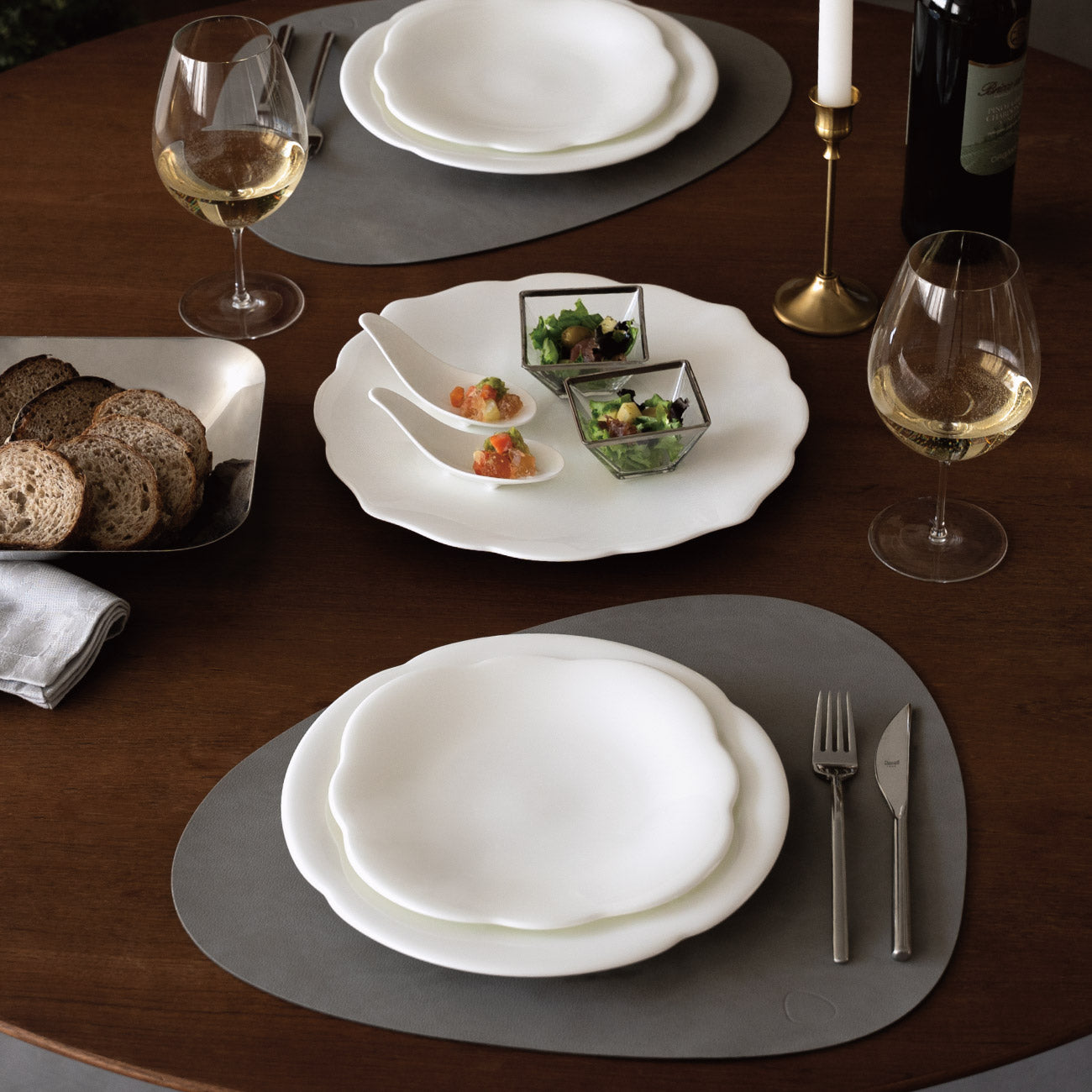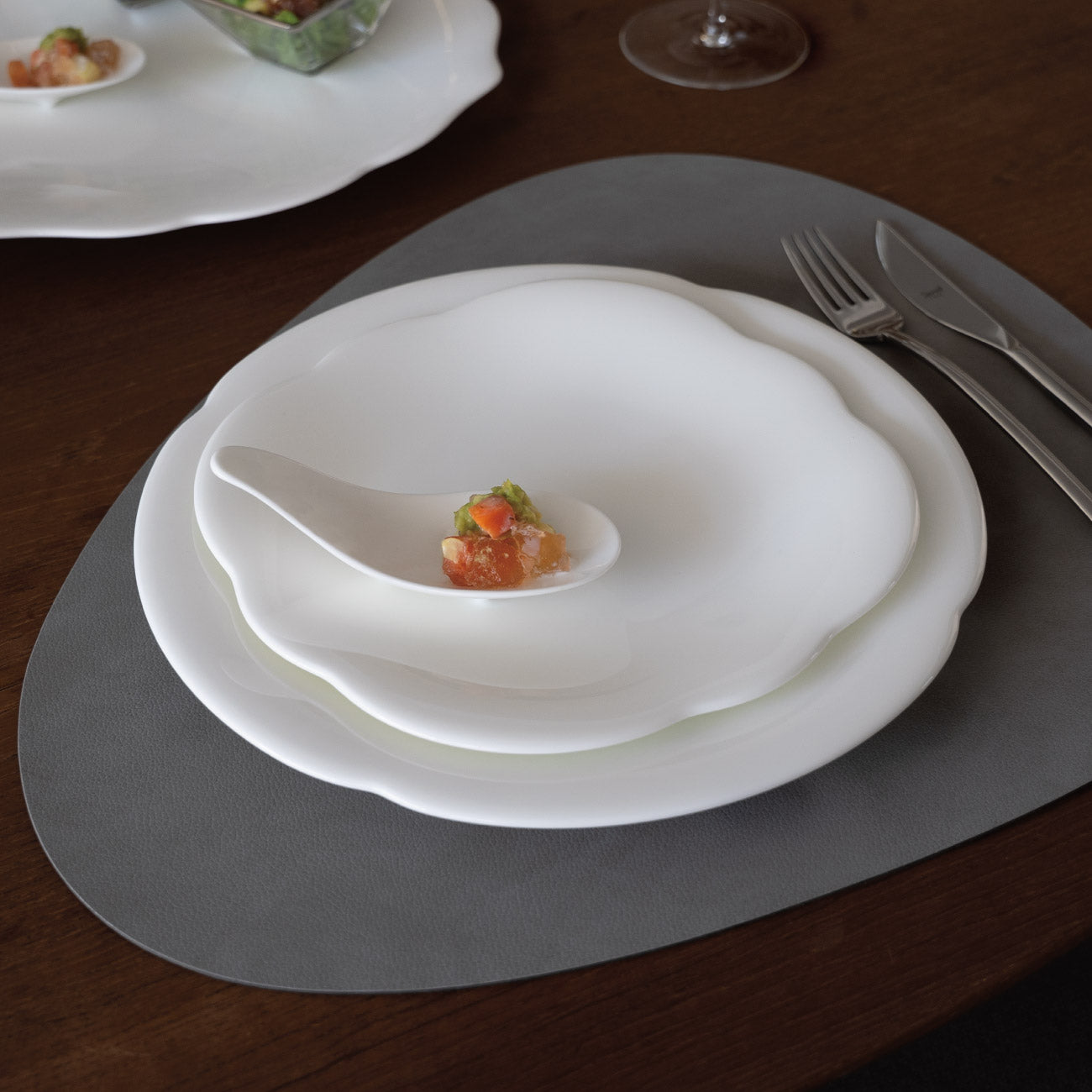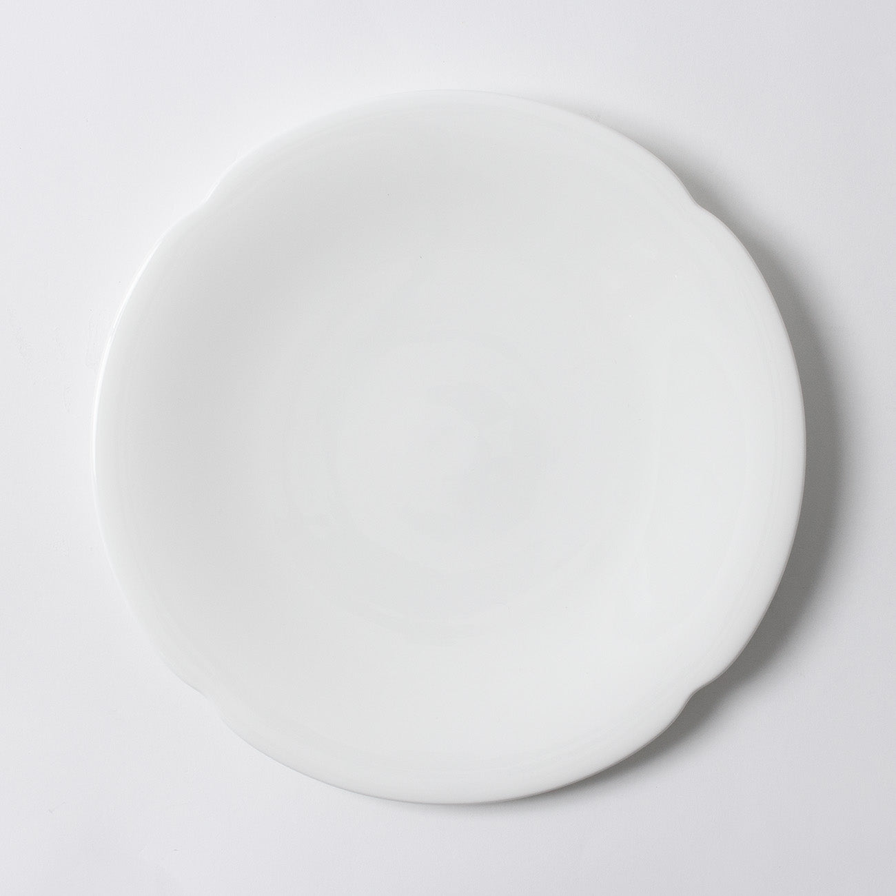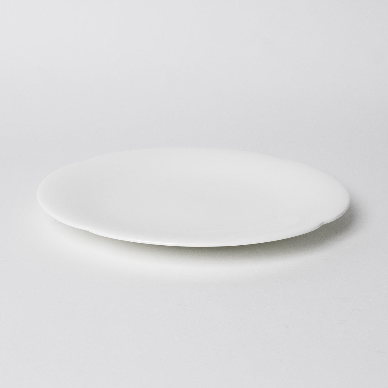 ふちのカッティングが華やかなプレートです。メインディッシュのお皿、ショープレート(敷き皿)としてお使いいただけます。