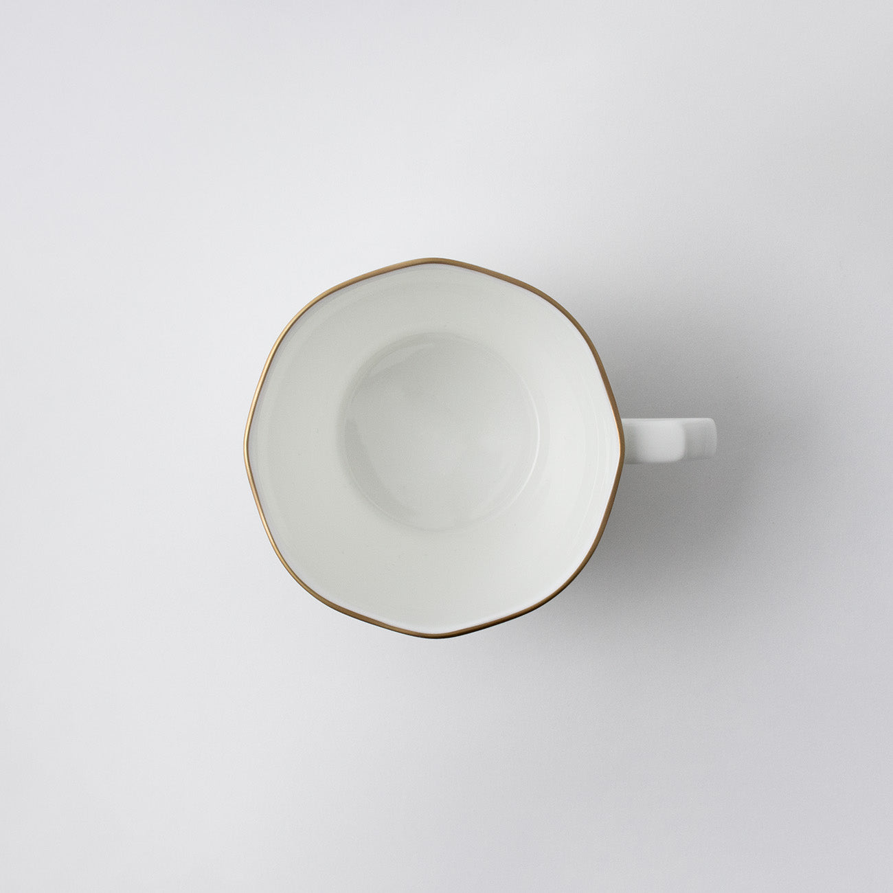 真っ白な素地に縁取られた金のラインが、アンテーゼの特徴である花形のシェイプを際立たせます。
