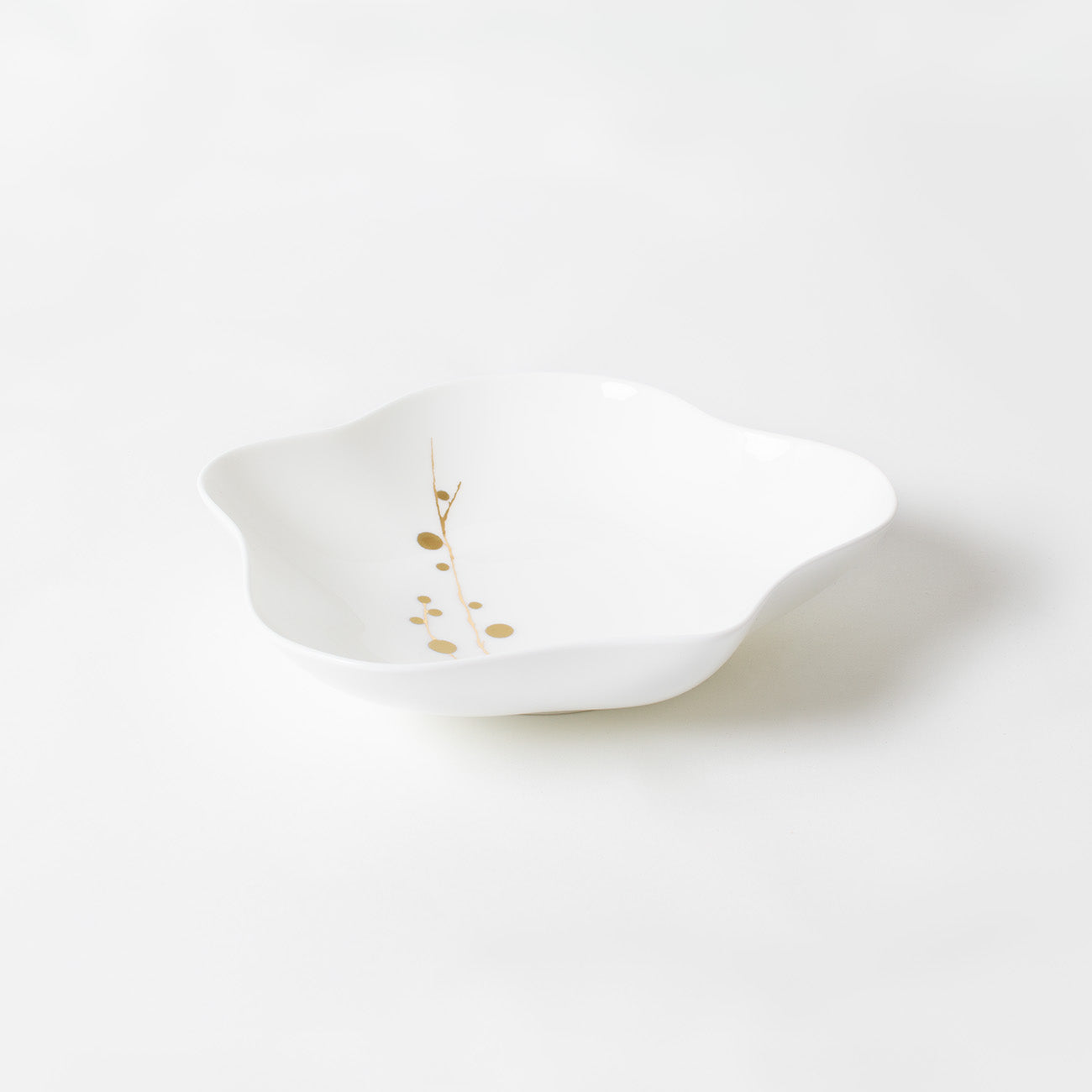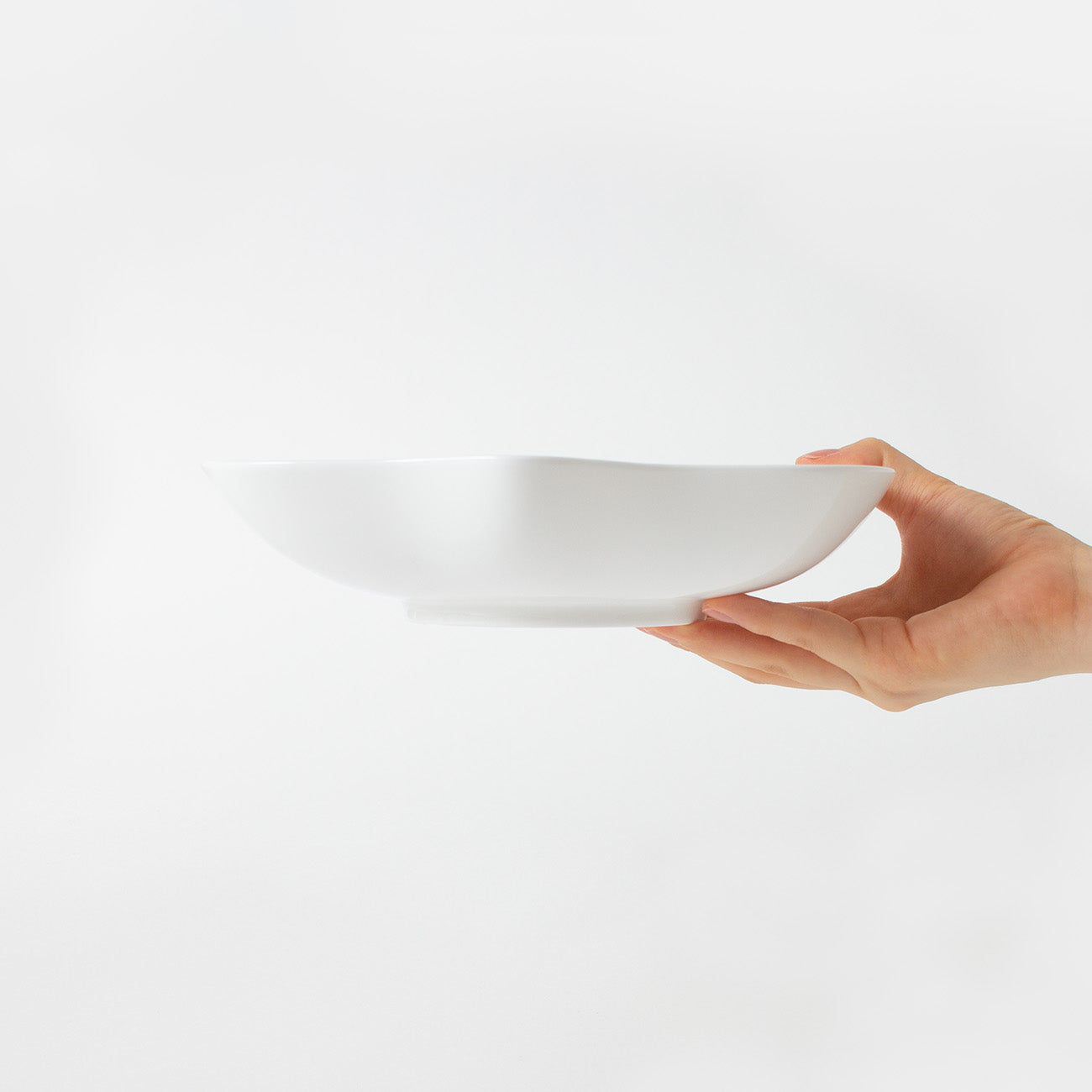 花が咲きほころぶ瞬間、その一瞬の美をイメージした形状。個性的でありながら、盛り付けもきれいに映えるボールです。サラダやパスタのお皿として、盛り鉢としてお使いいただけます。