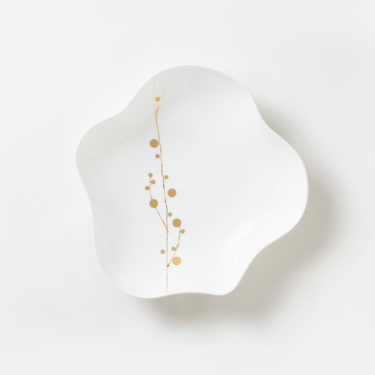 BLOSSOM(ブロッサム)、VOYAGE(ボヤージュ)シリーズとボド・スパレンの代表作「レッドベリー」が融合、きらめくゴールドを使って登場しました。ツヤのある「ゴールドベリー」がデリケートで優美なテーブルセッティングを実現します。