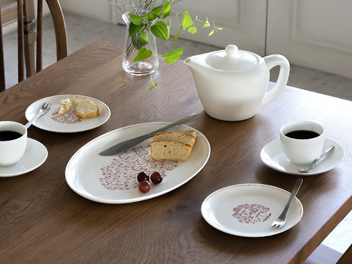 プレーンなデザインのプレートは、ケーキ皿としてお使いいただけます。※戦後間もない当時のオリジナルデザインを忠実に反映し、濃淡やかすれ感をニッコーの転写技術で再現しています。
