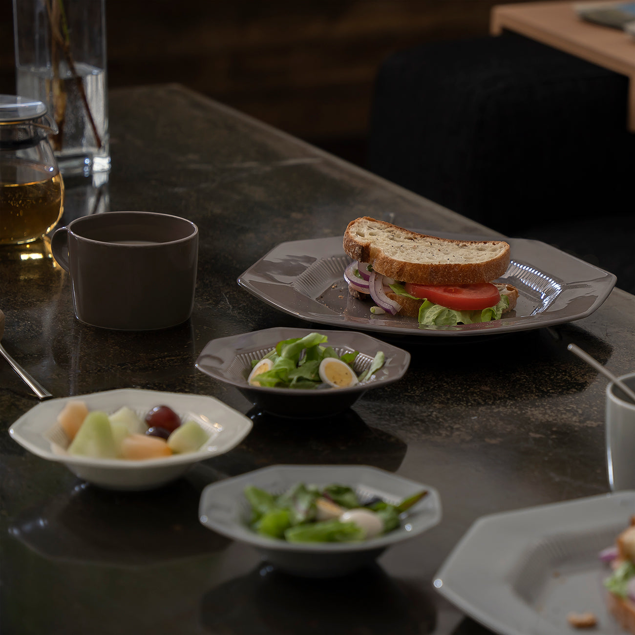 メインやワンプレート、ソースの多いメニューにもさまざまなシーンで活躍できるプレートです。特徴的な形はいつものおうちを特別な空間に演出します。※オンラインショップ・直営店舗のみでの販売商品です。百貨店などからのお取り寄せ注文対象外の商品です。