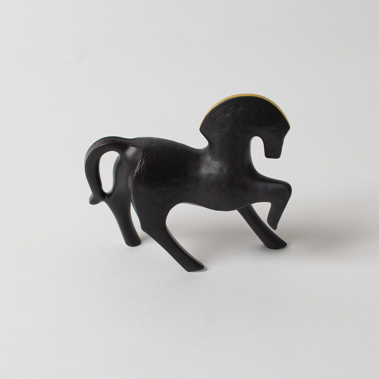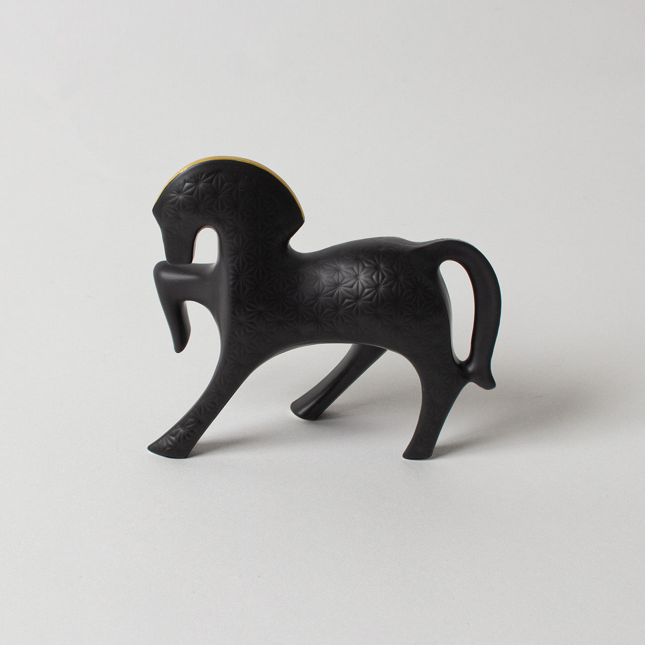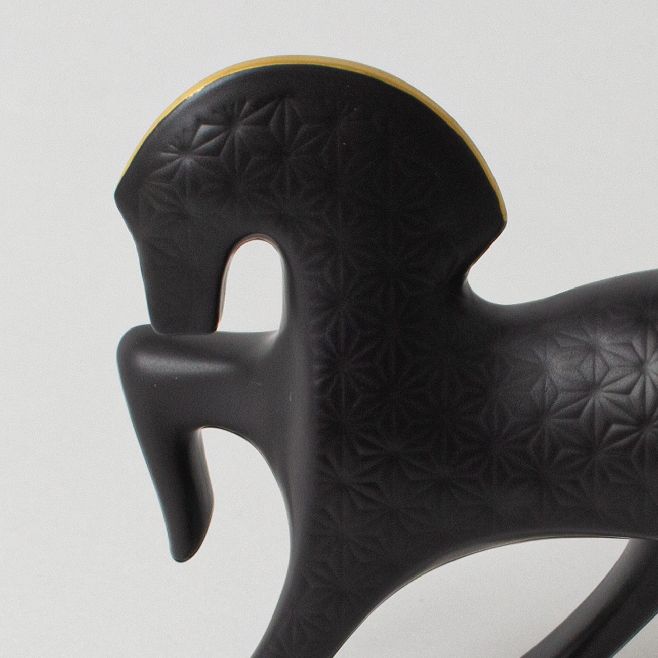モダンなフォルムで黒マット釉のフィギュアです。馬は成功、進展、繁栄を象徴しビジネスの成功やキャリアアップにも縁起が良いとされています。