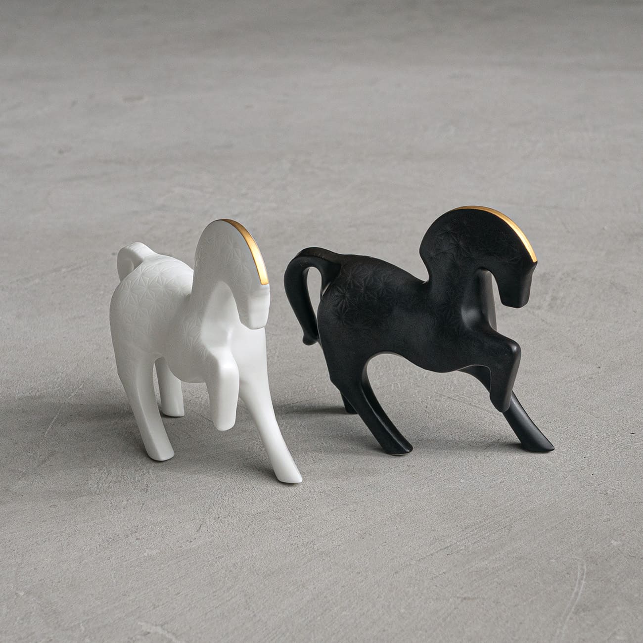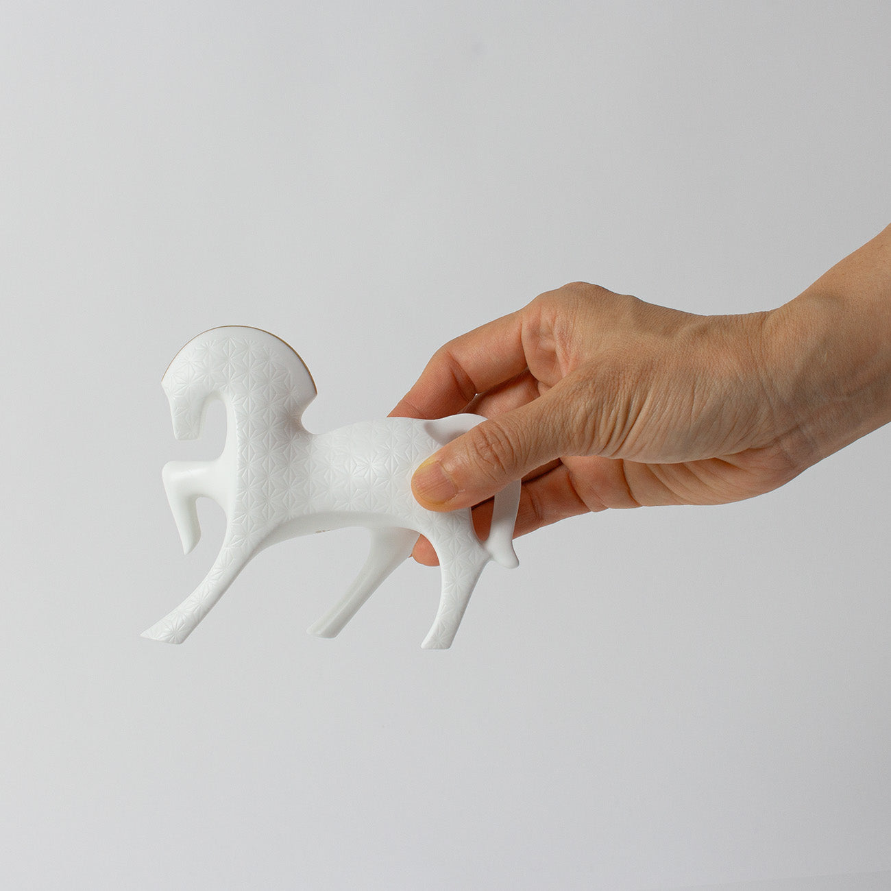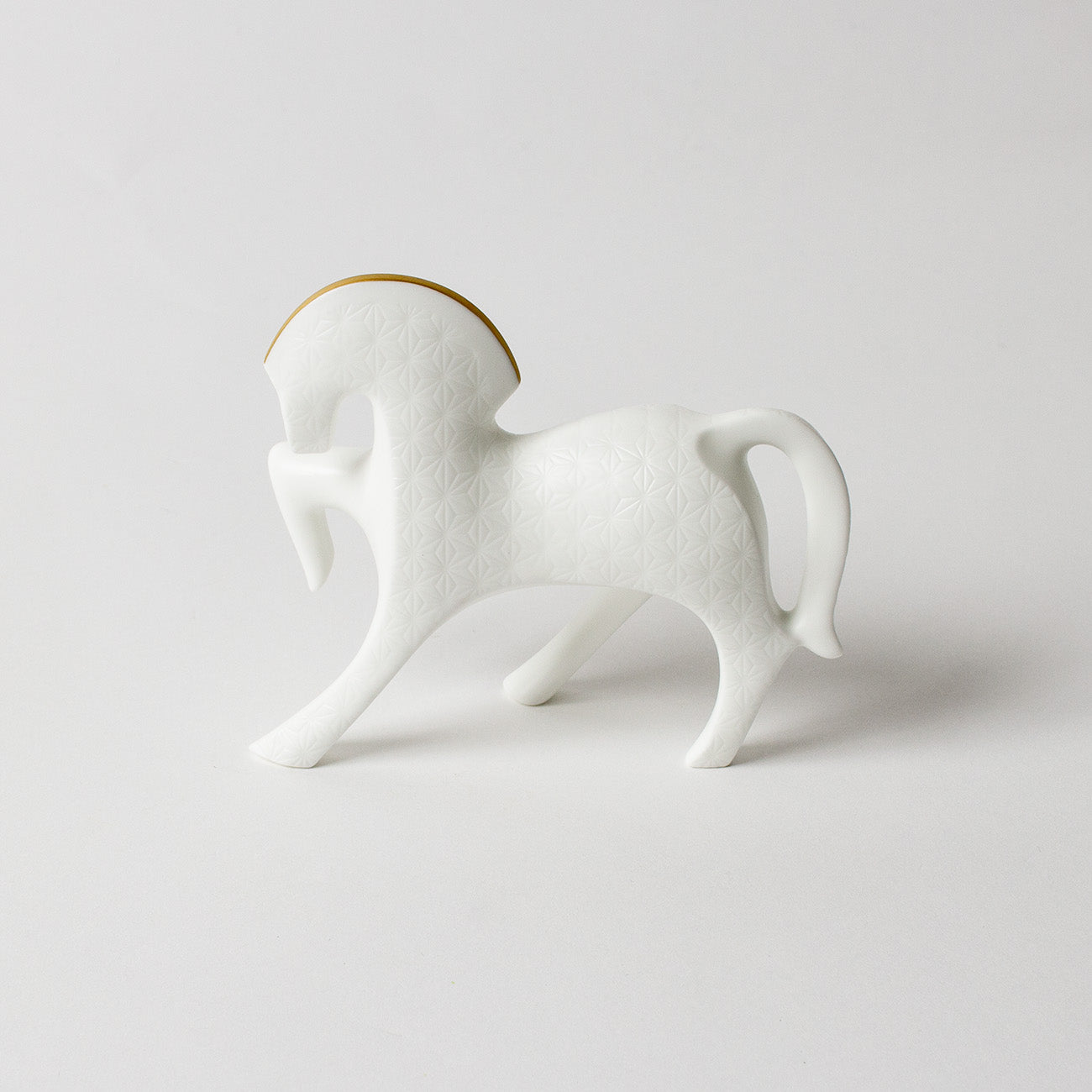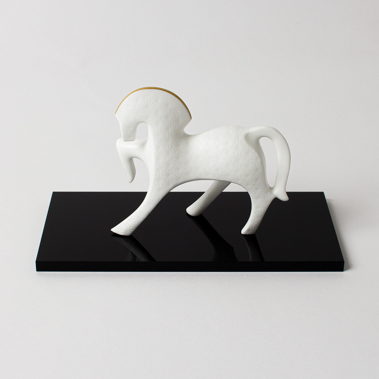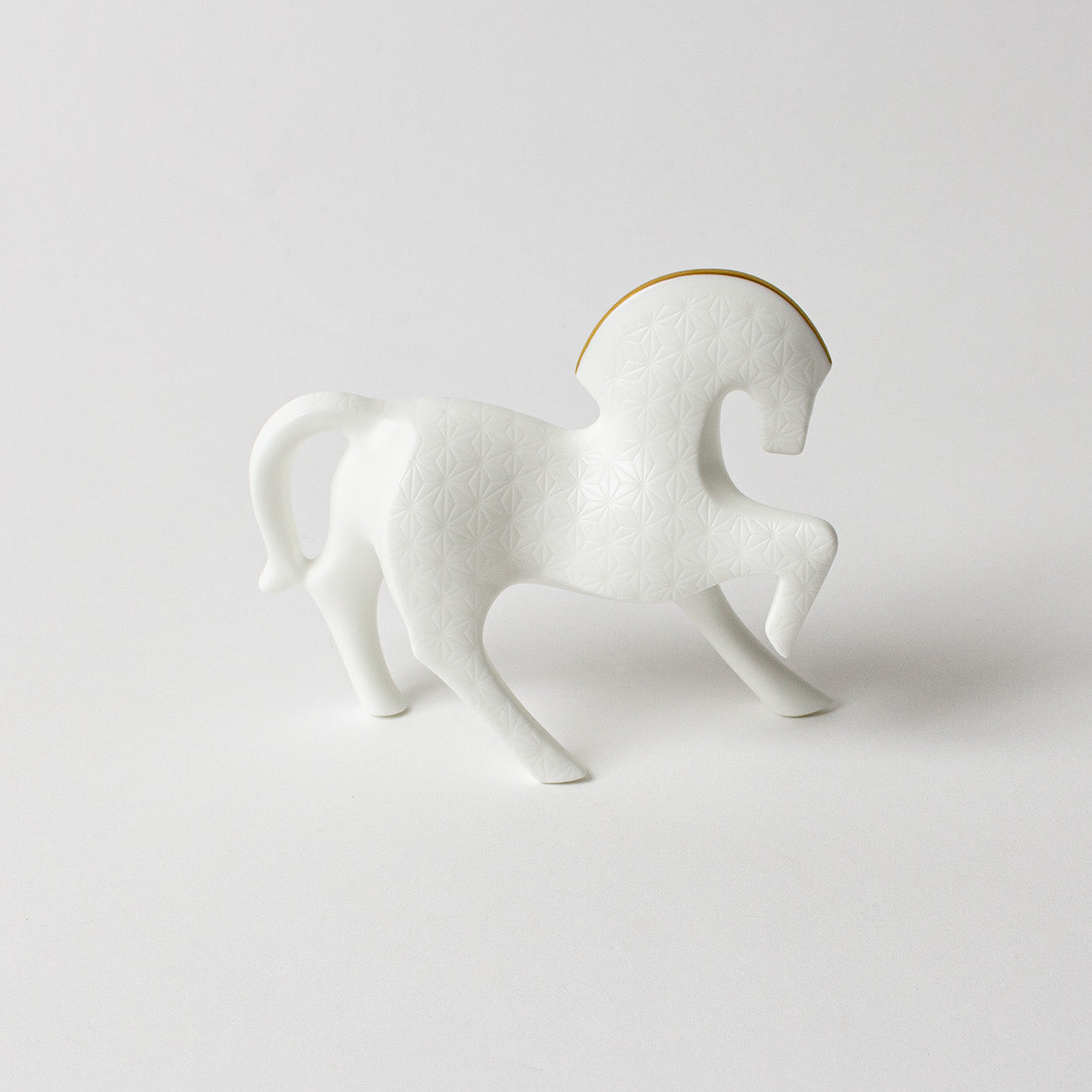 繁栄、成功、飛躍の象徴とされ、「所願成就」の縁起物として愛されてきた「午」のボーンチャイナ製の置物です。