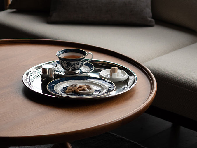 1915年(大正4年)の発売以来、流行に左右されることなく何世代にも渡って愛されてきた「山水(さんすい)」。描かれている絵柄は「ウィロー(柳)パターン」とよばれ、19世紀に世界中でブームとなった絵柄です。