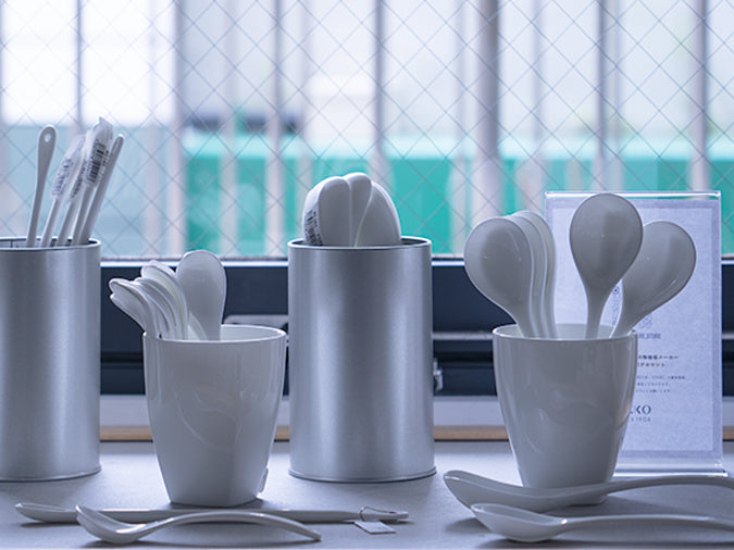 1983年の発売以来、30年以上愛され続ける陶磁器製のカトラリー。なかでも、NIKKO FINE BONE CHINA製スプーンのなめらかな口当たりは、一度使うと手放せなくなります。