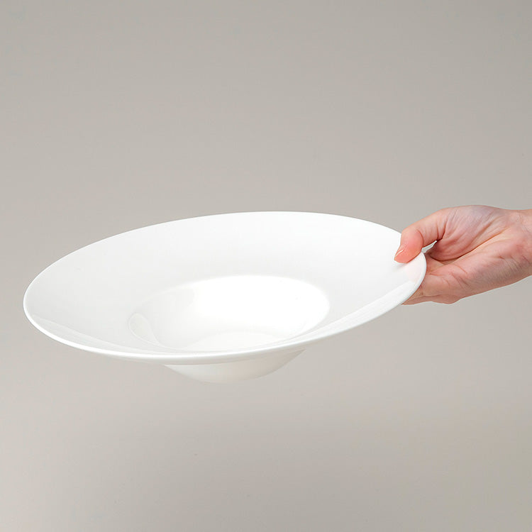 広いリムのボールは、お料理を美しく魅せる器です。メインディッシュや少なめのパスタなどにお使いいただけます。