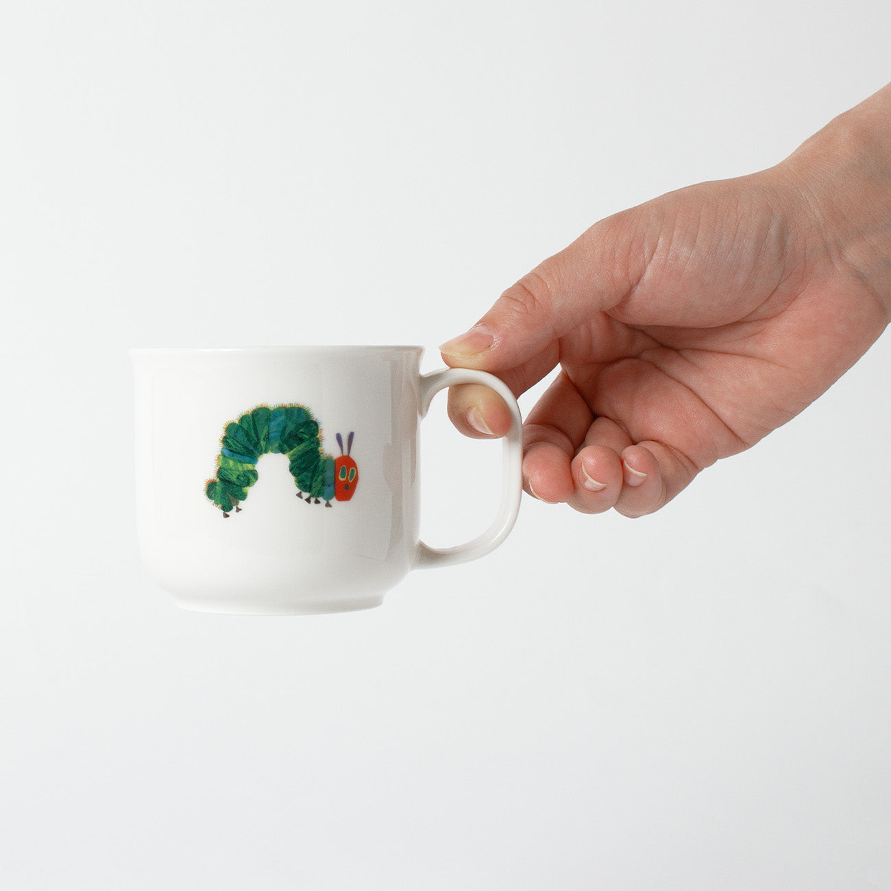 小さな子供でもしっかり持ちやすいハンドルの形にこだわりました。強化磁器製のマグは耐久性があるので、離乳食期から就学前頃まで、長い期間お使いいただけます。世代を超えて読み継がれる名作 エリック・カールの「はらぺこあおむし」がモチーフ。「はらぺこあおむし」のようにもりもり食べて、元気に大きく育って欲しいという願いも込もった子供食器です。